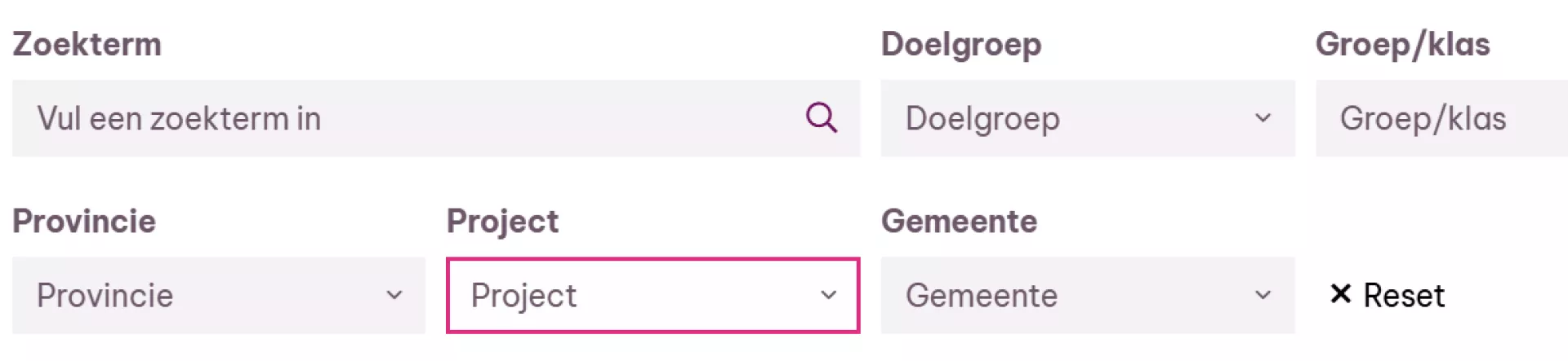Plus eventueel het filter gemeente, doelgroep etc.